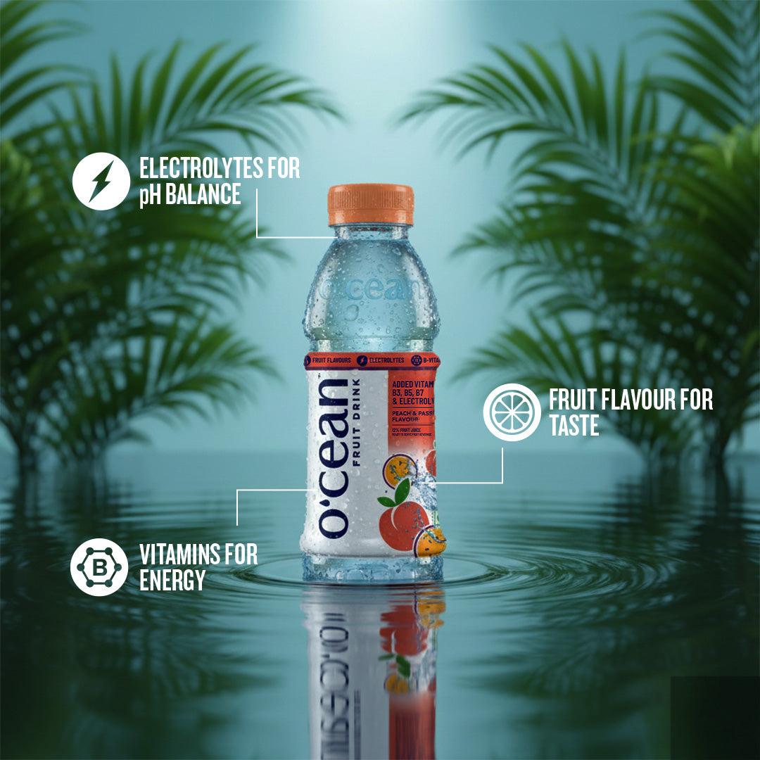 If you could pack vacation vibes in a bottle, this is what it would taste like! Our O’cean Fruit Water with Peach & Passionfruit is a delicious blend of exotic flavours that is sure to brighten your day.