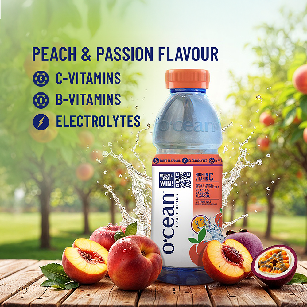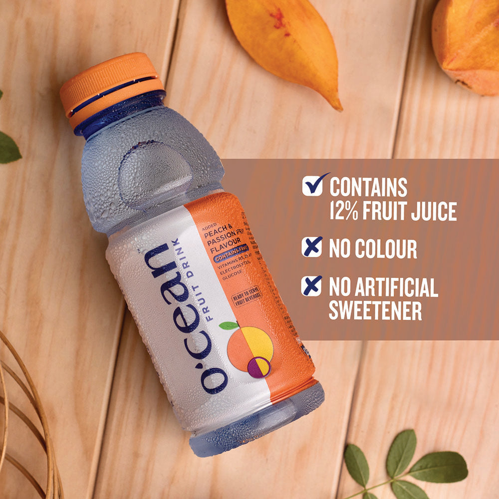 If you could pack vacation vibes in a bottle, this is what it would taste like! Our O’cean Fruit Water with Peach & Passionfruit is a delicious blend of exotic flavours that is sure to brighten your day.