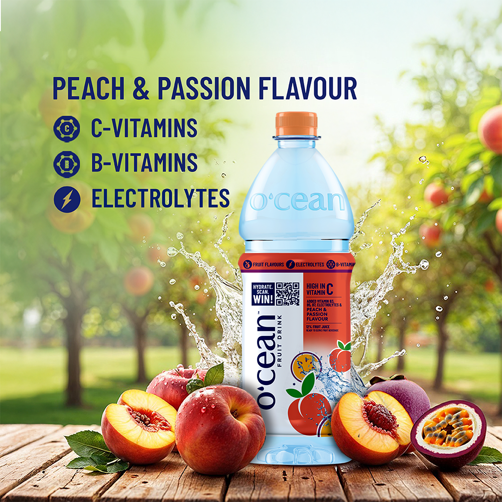 Vacation vibes, packed in a bottle!  O’cean Peach & Passion Fruit Water is a refreshing burst of exotic flavours, high in Vitamin C, enriched with B vitamins, and loaded with electrolytes to keep you energized and hydrated. Score cool stuff with every bottle! Scan the QR code for a chance to WIN iPhones, cricket merch, accessories, and more!